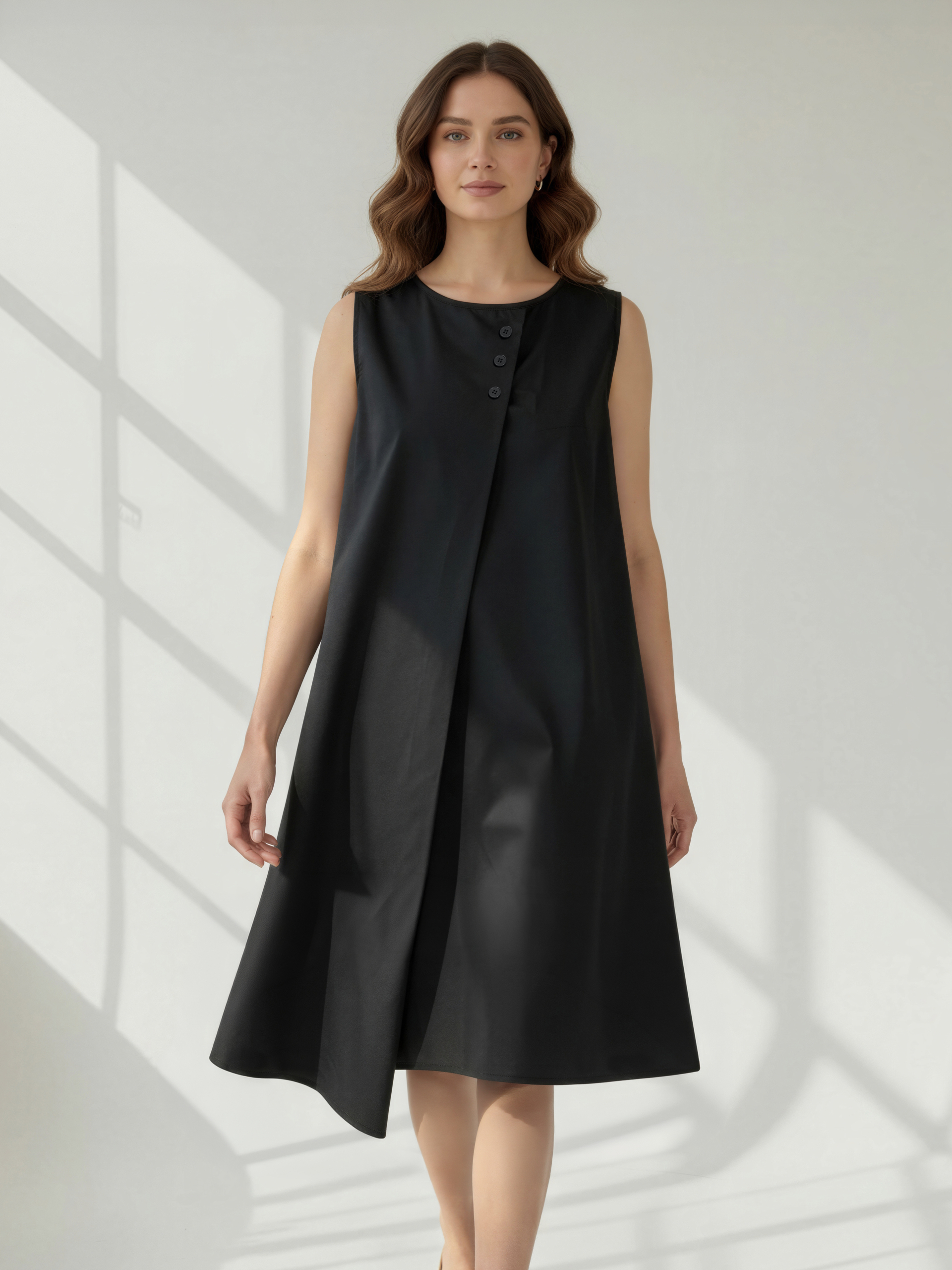 Sukienka ÉPURE została uszyta z lekkiej, przewiewnej tkaniny bawełnianej, która naturalnie układa się na sylwetce i daje komfort nawet w najcieplejsze dni.